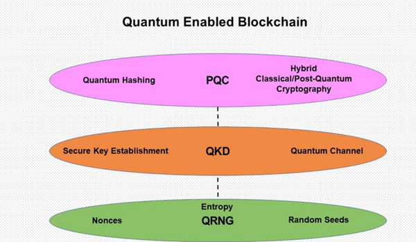 - There is a need for low-cost information-theoretically secure (ITS) solutions that instantly strengthen standardized cryptography systems used in blockchains. Already much discussed in this context are quantum-enabled blockchain architectures based on Quantum Random Number Generators (QRNG) and Quantum Key Distribution (QKD). Another important concept is quantum-enabled blockchain, which refers to an entire blockchain or some aspects of the blockchain functionality being run in quantum computing environments.