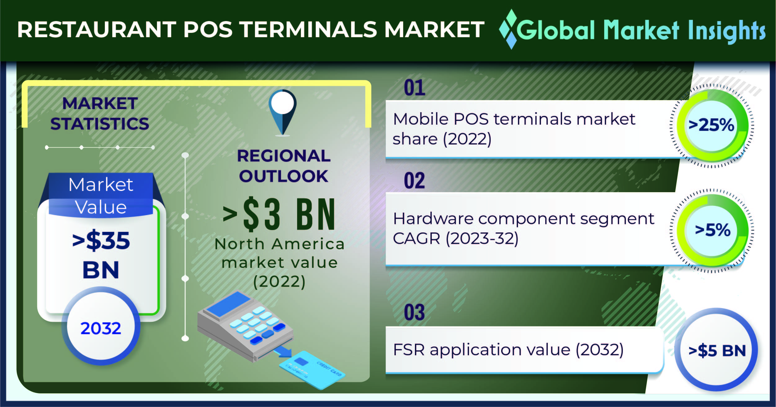 The restaurant POS terminals market valuation is anticipated to cross USD 35 billion by 2032, as reported in a research study by Global Market Insights Inc.