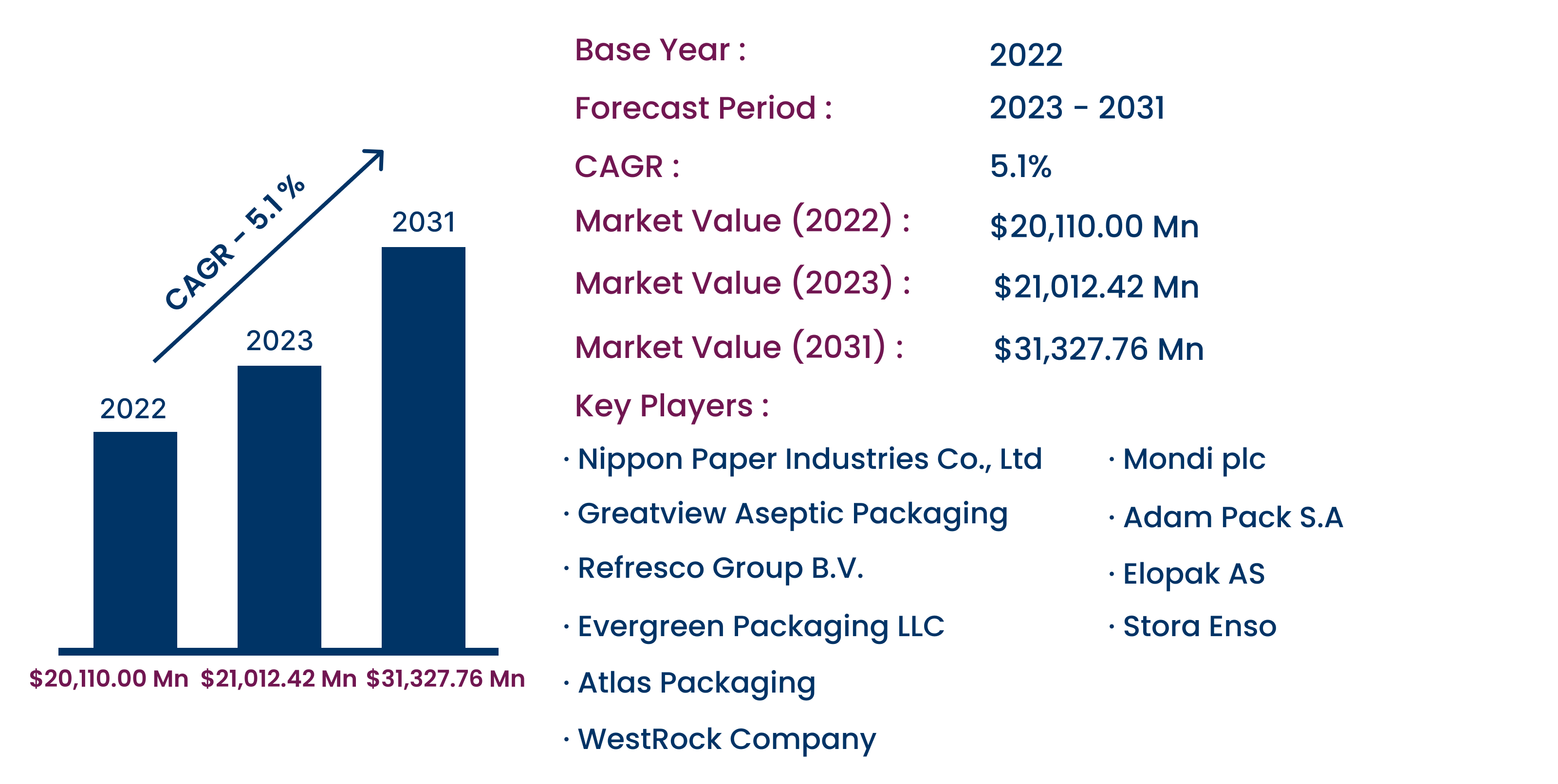 | Key Players | Elopak AS, Nippon Paper Industries Co., Ltd, Greatview Aseptic Packaging, Refresco Group B.V., Evergreen Packaging LLC, Mondi plc, Adam Pack S.A, WestRock Company, Stora Enso, and Atlas Packaging |