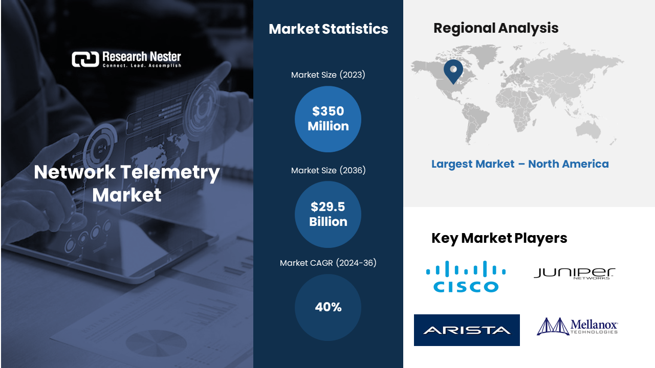 A few of the well-known market leaders in the global network telemetry market that are profiled by Research Nester are Cisco Systems, Juniper Networks, Arista Networks, Mellanox Technologies, Pluribus Networks, Barefoot Networks, Solarflare Communications, VOLANSYS Technologies, Nokia Corporation, IBM Corporation, and other key market players.