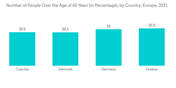 The increasing prevalence of respiratory diseases, technological advancements, and the growing geriatric population are expected to drive market growth over the forecast period. Chronic obstructive pulmonary disease (COPD) is a life-threatening lung disease that interferes with normal breathing. According to an article published by the European Respiratory Journal in September 2021, it is estimated that 49,453,852 people will have COPD with a prevalence of 9.3% by the end of 2050. The article also stated that by 2050, there will be approximately 7.6 million, 7 million, and 4.8 million people affected with COPD in Germany, the United Kingdom, and Spain respectively. Thus, the high prevalence of COPD is anticipated to drive the respiratory monitoring market in Europe.