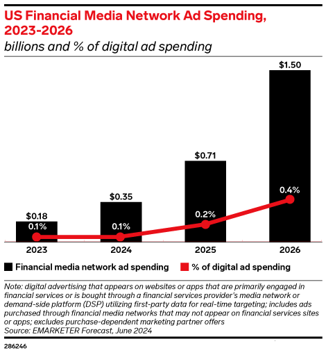 - US Financial Media Network Ad Spending, 2023-2026 (billions and % of digital ad spending)