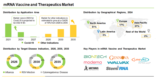 Dublin, Sept. 26, 2024 (GLOBE NEWSWIRE) -- The "mRNA Vaccine and Therapeutics Market Industry Trends and Global Forecasts to 2035: Distribution by Application Area, Target Disease Indication and Geographical Regions" report has been added to ResearchAndMarkets.com's offering.