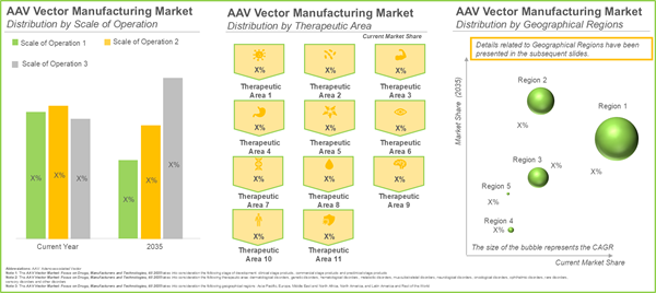 - Presently, close to 95 players across the globe claim to offer their services across various scale of operations in order to support the development of AAV therapies; notably, majority of these firms are based in North America.