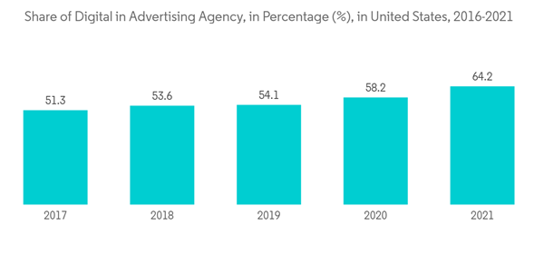 - The shift to digital omnichannel marketing over traditional methods has accelerated software adoption. According to the CMO Survey, digital marketing spending is projected to grow by 14.32% while traditional avenues are expected to decline.