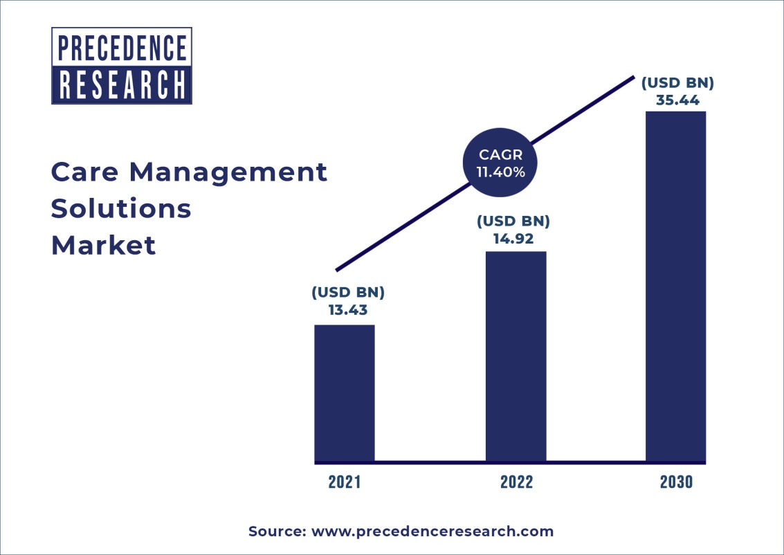 According to Precedence Research, the global care management solutions market size was accounted at US$ 13.43 billion in 2021 and expected to hit US$ 35.44 billion by 2030.