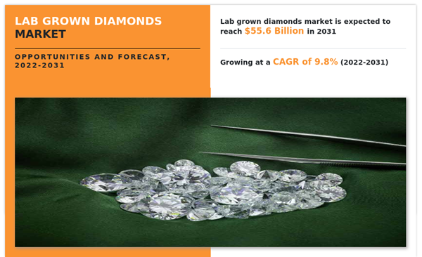 The global lab grown diamonds market size was valued at $22.2 billion in 2021, and is projected reach $55.5 billion by 2031, registering a CAGR of 9.8% from 2022 to 2031.