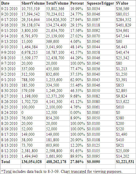 Short Squeeze Expected Above $.009 SqueezeTrigger Price