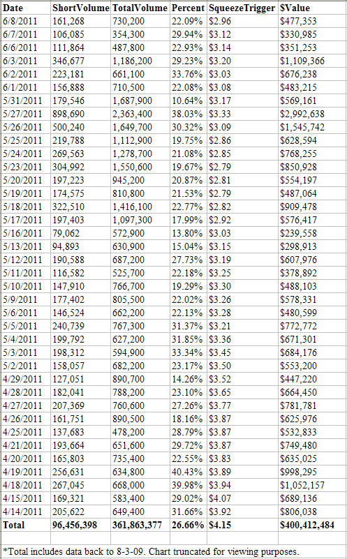 SqueezeTrigger -- 31 billion cell database tracks EVERY short sale (not just total short interest) in all U.S. stocks and calculates volume weighted price that a short squeeze will begin.