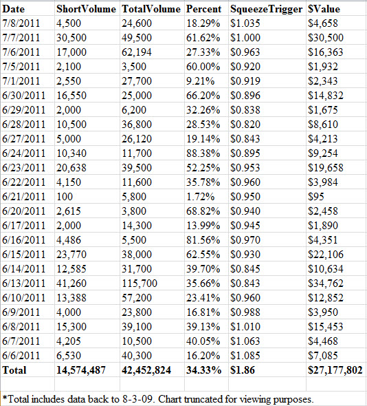 • Approximately 14.57 Million Total Shares Shorted Since August 2009