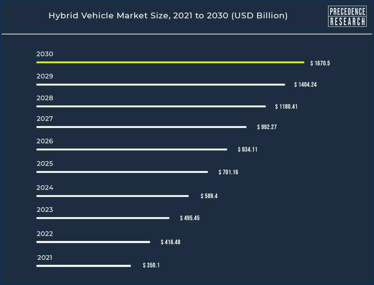 Hybrid Vehicle Market Size to Worth Around USD 1670.5 Bn by 2030