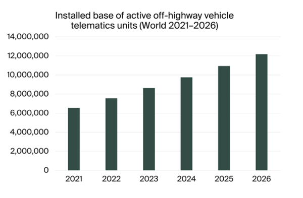 The analyst estimates that the global installed base of active off-highway vehicle telematics systems reached 6.6 million units in 2021. This includes connected units deployed on various off-highway vehicles across the construction, mining, agriculture and forestry sectors.