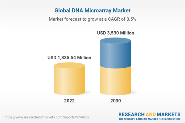 The global DNA microarray market size is expected to reach USD 3.53 billion by 2030, registering a CAGR of 8.5% from 2023 to 2030.