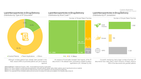 Therefore, it is important to keep track of both pockets of innovation and key areas of improvement for stakeholders to remain competitive in this upcoming field of the healthcare domain. This report captures some of the key R&D trends and provides competitive intelligence on intellectual property related to lipid nanoparticles and their applications in drug delivery.