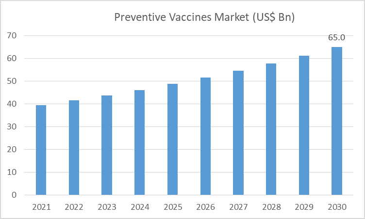 Preventive Vaccines Market is estimated to be US$ 69 billion by 2030 with a CAGR of 6.0% during the forecast period - By PMI