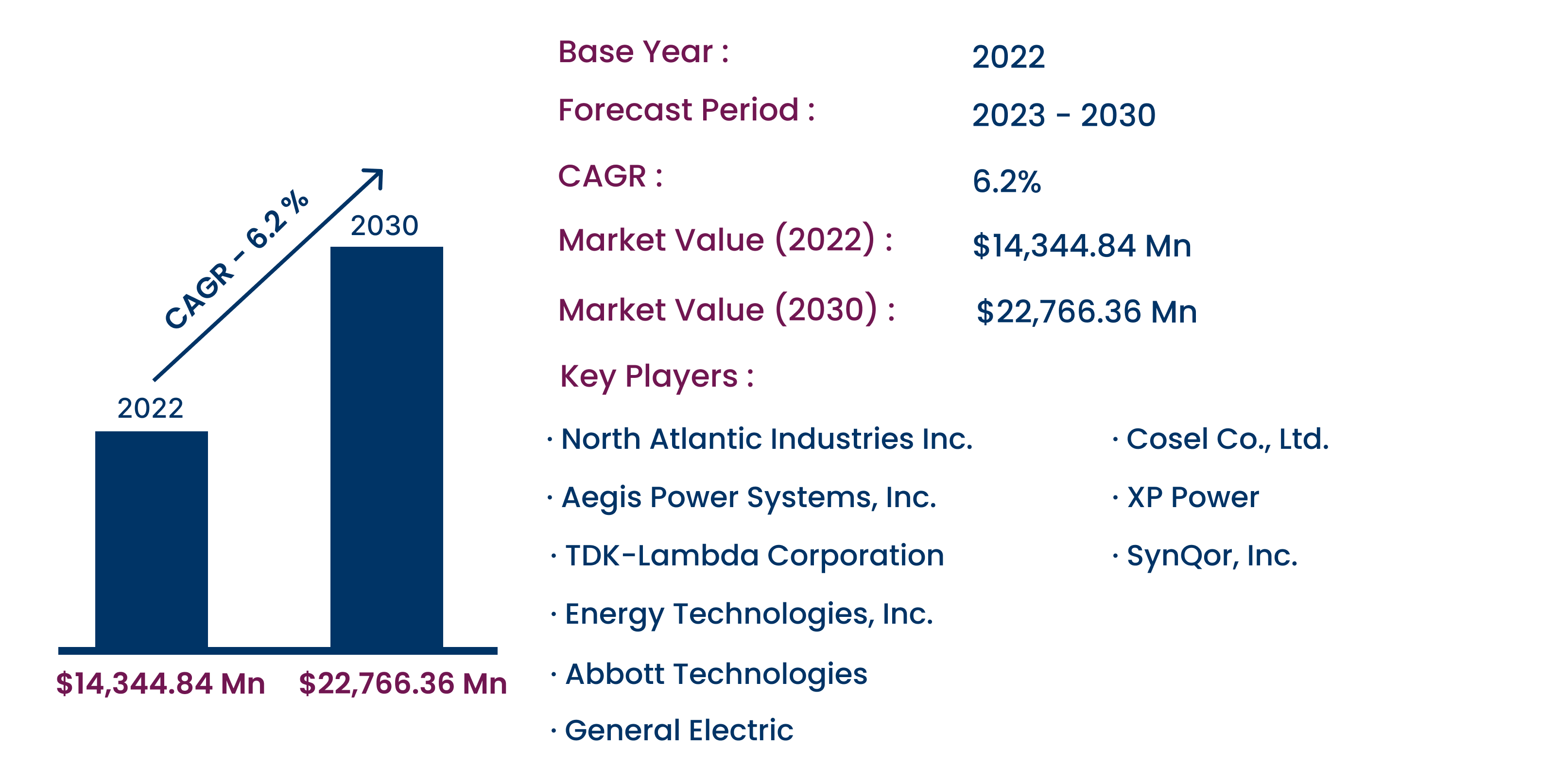 New York, Aug. 30, 2023 (GLOBE NEWSWIRE) -- According to the research report “Global Rugged Power Supply Market” published by Consegic Business Intelligence, the market was sized at USD 14,344.84 million in 2022 and is expected to reach over USD 22,766.36 million by the year 2030, growing at a CAGR of 6.2%.