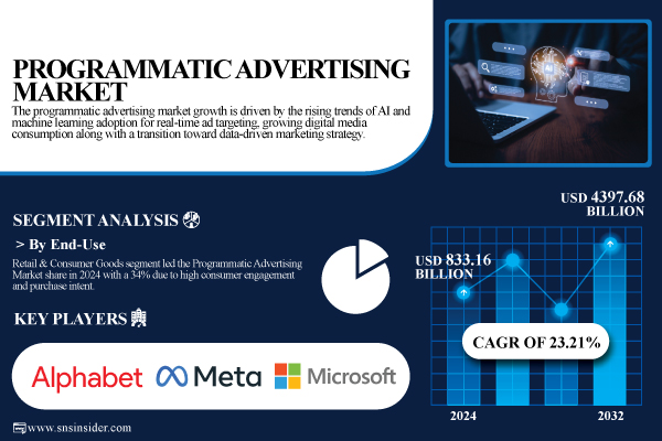 Austin, Sept. 09, 2025 (GLOBE NEWSWIRE) -- The Programmatic Advertising Market size was valued at USD 833.16 billion in 2024 and is expected to reach USD 4397.68 billion by 2032, growing at a CAGR of 23.21% over the forecast period of 2025-2032.