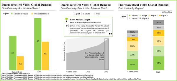 - The estimated market opportunity for pharmaceutical vials is expected to be well distributed across different types of fabrication material, sterilization status and geographical regions.
