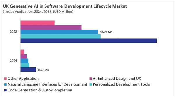 Based on Application, the market is segmented into Code Generation & Auto-Completion, Personalized Development Tools, Natural Language Interfaces for Development, AI-Enhanced Design and UX, and Other Application. Among various UK Generative AI in Software Development Lifecycle Market by Application; The Code Generation & Auto-Completion market achieved a market size of USD $8.6 Million in 2024 and is expected to grow at a CAGR of 31.5 % during the forecast period. The Natural Language Interfaces for Development market is predicted to experience a CAGR of 33.2% throughout the forecast period from (2025 - 2032).