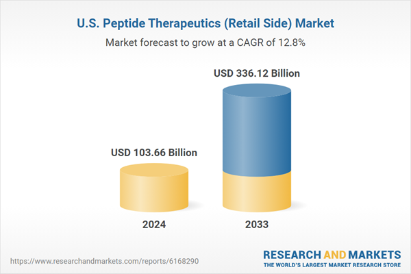 The U.S. peptide therapeutics (retail side) market size was estimated at USD 103.66 billion in 2024 and is expected to reach USD 336.12 billion by 2033, growing at a CAGR of 12.77% from 2025 to 2033.