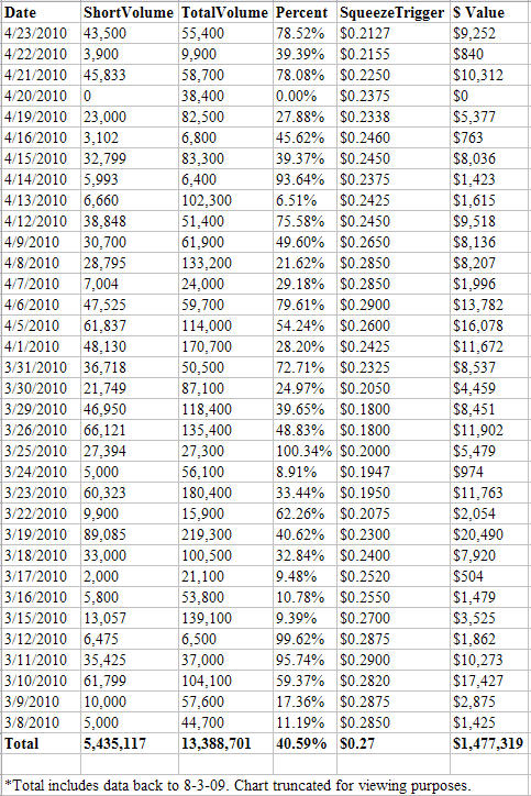 SqueezeTrigger -- 25 billion cell database tracks EVERY short sale (not just total short interest) in all US stocks and calculates volume weighted price that a short squeeze will begin in each stock.