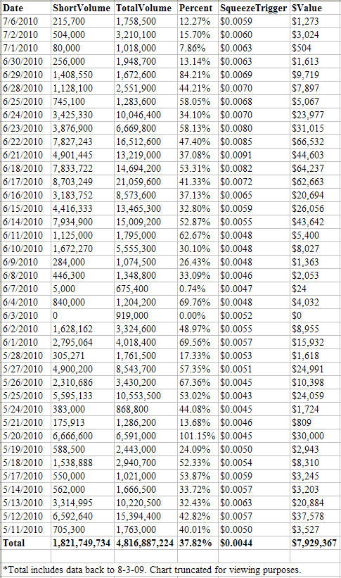 SqueezeTrigger -- 27 billion cell database tracks EVERY short sale (not just total short interest) in all U.S. stocks and calculates volume weighted price that a short squeeze will begin in each stock.
