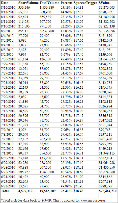 - Approximately 4.58 Million Shares Shorted Since August 2009