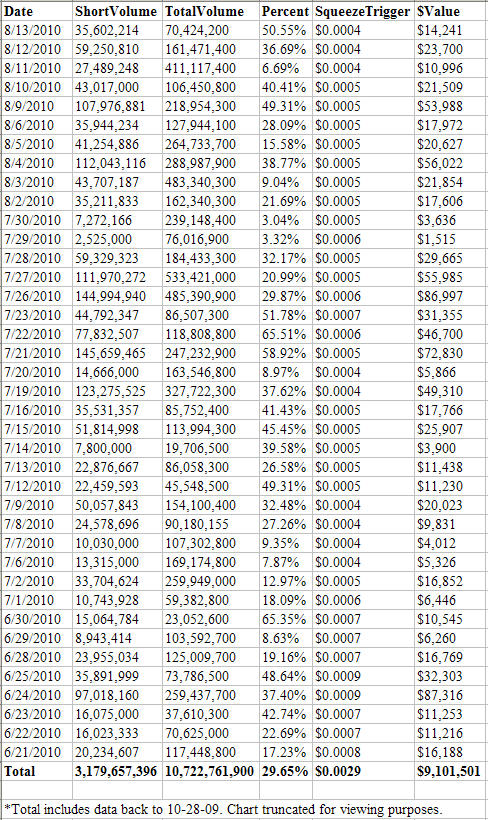 - Approximately 3.18 Billion Shares Shorted Since October 2009
