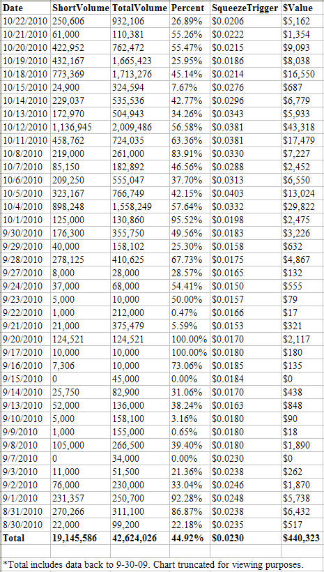 • Approximately 19.14 Million Shares Shorted Since September 2009