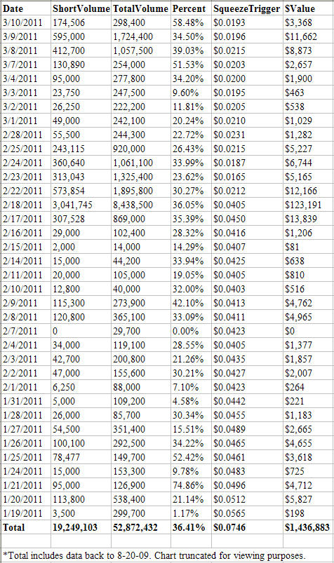 - Approximately 19.25 Million Shares Shorted Since August 2009