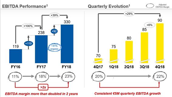 • The Company expects to continue its good commercial momentum during 2019 and reach an EBITDA of 450 M € (+36%).