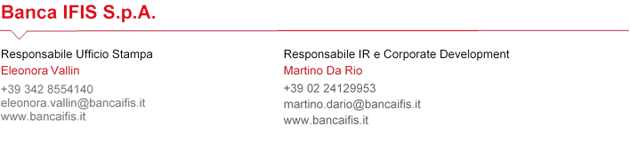 Il Gruppo Banca IFIS, adottando un approccio di trasparenza e tempestività nella comunicazione al mercato, pubblica costantemente informazioni sui fatti di rilievo tramite comunicati stampa. Si rimanda alla sezione “Investor Relations” e alla sezione “Media Press” del sito web istituzionale www.bancaifis.it per visualizzare tutti i comunicati stampa.