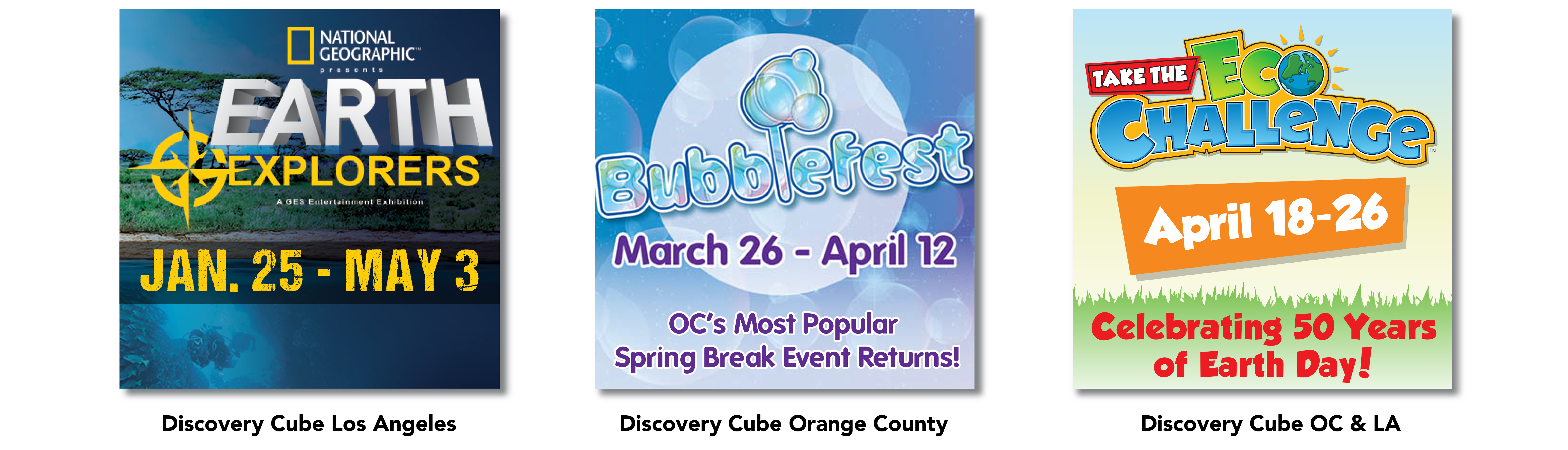 Celebrate the 50th anniversary of Earth Day and take the Eco Challenge at Discovery Cube OC, Discovery Cube LA and Discovery Cube’s Ocean Quest on select days in April. Learn about creatures that break down organic material and how to live greener by eliminating waste. Experience unique shows at each campus, including “Compost Soup” at Discovery Cube OC, “Animal Advocates” at Discovery Cube LA and “Ocean Advocates” at Discovery Cube’s Ocean Quest.