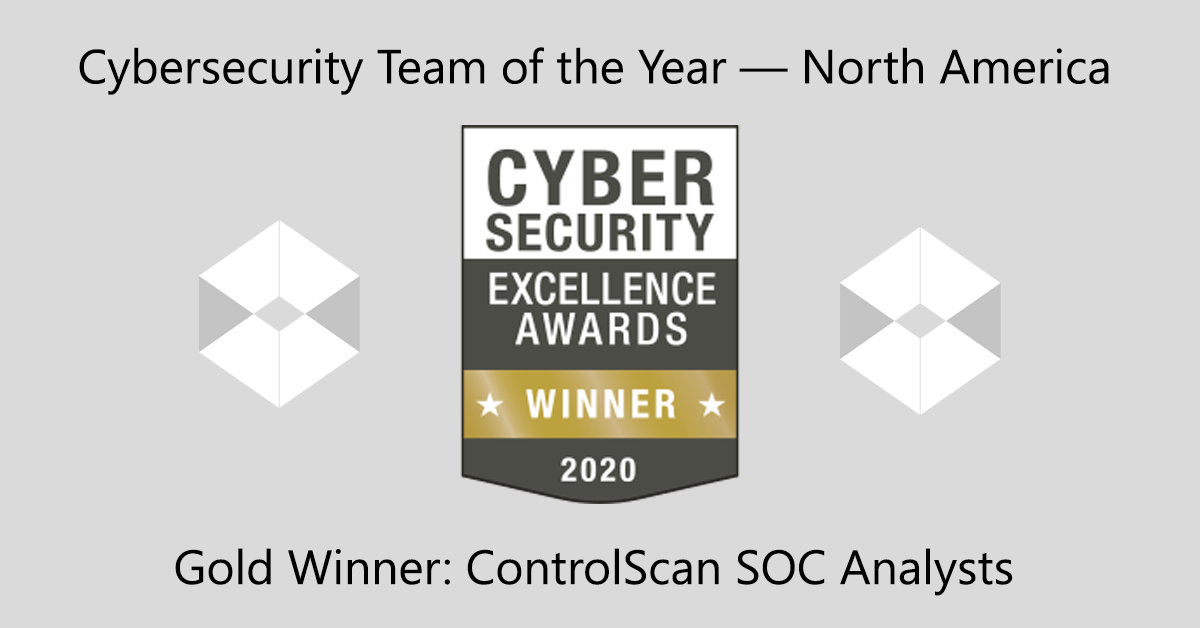 ATLANTA, Feb. 27, 2020 (GLOBE NEWSWIRE) -- ControlScan, a leader in managed security services specializing in compliance, detection and response, has received a gold Cybersecurity Excellence Award recognizing its security operations center (SOC) analysts as “Cybersecurity Team of the Year.” In addition, the company was awarded silver as “Best Cybersecurity Company” and “Cybersecurity Service Provider of the Year.” All three awards are for organizations with 100-499 employees operating within North America.