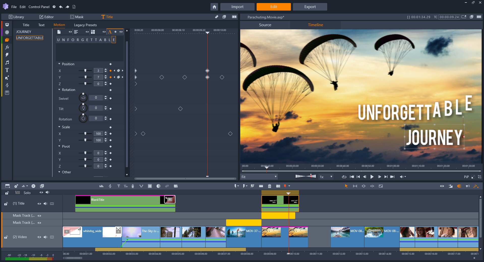 Supporting 4K, HD, and 360-degree video, Pinnacle Studio 24 Ultimate also offers dynamic transitions, track transparency, and stop motion animation. Additional capabilities include: