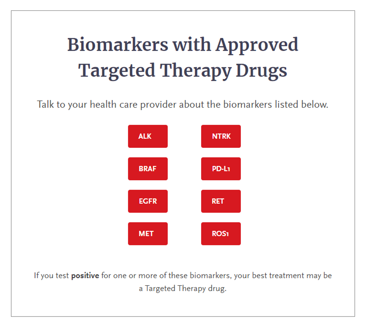 By answering a few brief questions online, lung cancer patients and their loved ones can receive personalized information about their biomarker testing options and better understand what their test results mean for their treatment options.