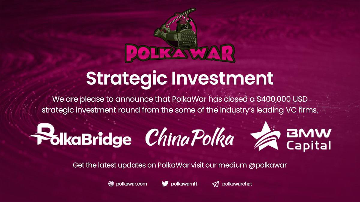 SINGAPORE, May 26, 2021 (GLOBE NEWSWIRE) -- PolkaWar, an upcoming NFT-based fighting game, announces that the company has secured $400,000 in funding from the strategic partners at ChinaPolka, BMW Capital and PolkaBridge in an exclusive private-sale round, which was conducted earlier this month.