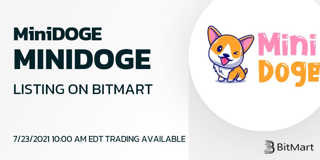 Phoenix, Arizona, July 23, 2021 (GLOBE NEWSWIRE) -- MiniDoge is on a mission to reach the top in the Cryptocurrency world. July 23rd at 10 AM EST, it will be available to trade on Bitmart, one of the top ten CEX exchanges in the world. With over $850 million traded in the last 24 hours, it will provide more exposure and volume for MiniDoge. The platform operates in 180 countries and across 123 platforms, providing an easy way to exchange fiat into currency.