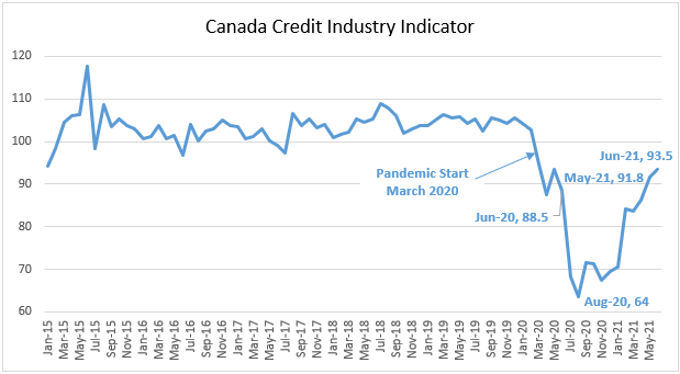 (i) A lower CII number compared to the prior period represents a decline in credit health, while a higher number reflects an improvement. The CII number needs to be looked at in relation to the previous period(s) and not in isolation. In June 2021, the CII of 93.5 represented an improvement in credit health compared to same month prior year (June 2020) and compared to prior month (May 2021).