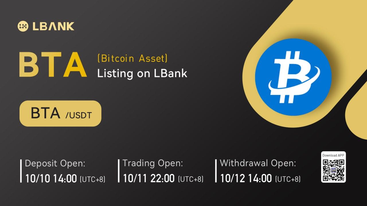 Listing Announcement on LBank Exchange: https://support.lbank.site/hc/en-gb/articles/4407627242521-BTA-Bitcoin-Asset-will-be-listed-on-LBank