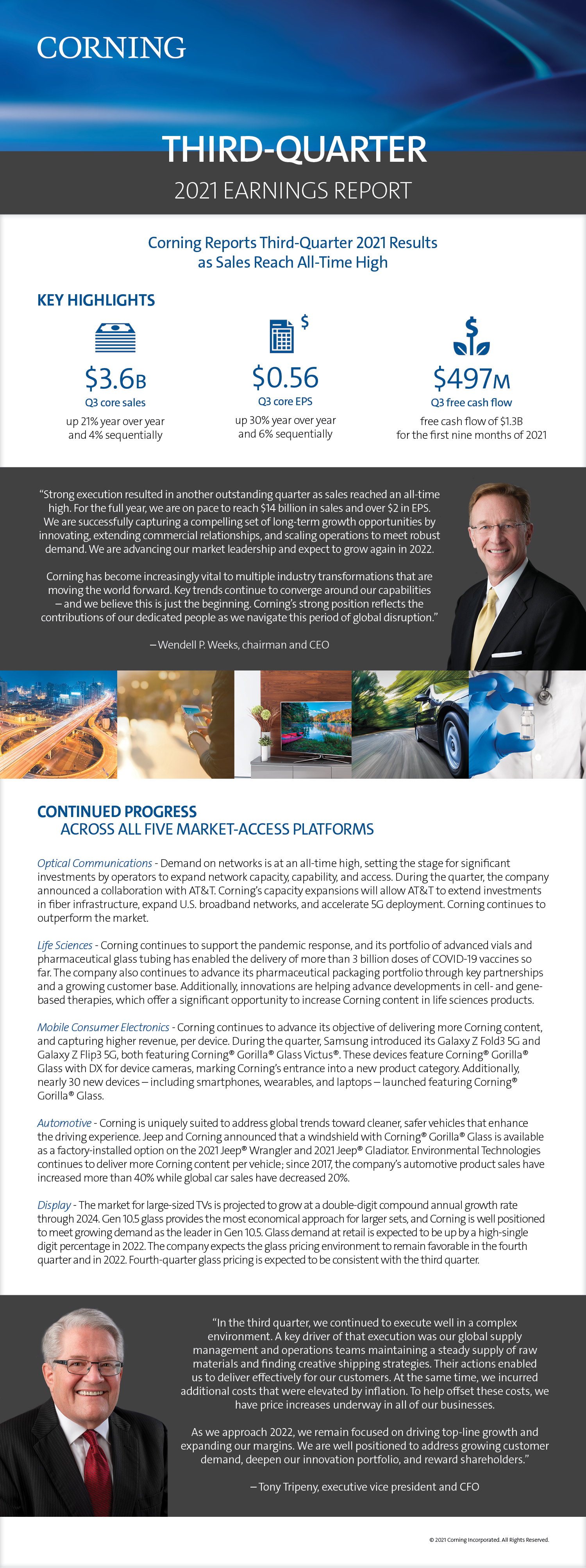 - Corning Reports Third-Quarter 2021 Results as Sales Reach All-Time High
