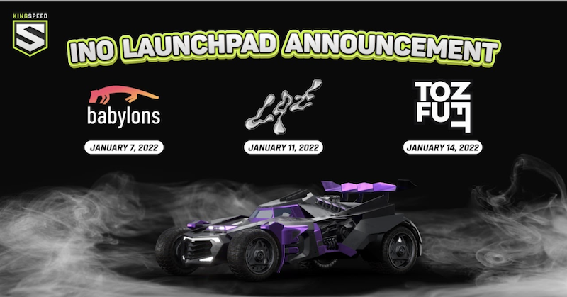 Hanoi, Vietnam, Jan. 06, 2022 (GLOBE NEWSWIRE) -- After the massive success of KingSpeed’s Token Offering which sold out in mere minutes, KingSpeed has announced their INO event this January. On January 7th, Babylons will launch (Register for the whitelist here), on January 11th Liquidifty launches (Register for the whitelist here), and on January 14th Tofu NFT launches (Register for the whitelist here).