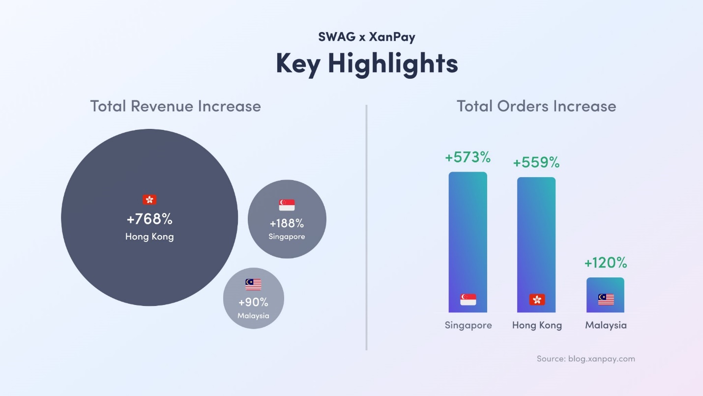 After getting to know about XanPay, SWAG integrated and went live with new payment options within a week. Immediately, they observed payment adoption from across 8 new countries. Singapore, Malaysia and Hong Kong became their biggest markets in this region. Additionally, the number of payment issues reported by users had also drastically reduced.