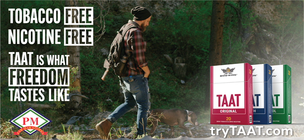 The Company has developed TAAT™, which is a tobacco-free and nicotine-free alternative to traditional cigarettes offered in "Original", "Smooth", and "Menthol" varieties. TAAT™'s base material is Beyond Tobacco™, a proprietary blend which undergoes a patent-pending refinement technique causing its scent and taste to resemble tobacco. Under executive leadership with "Big Tobacco" pedigree, TAAT™ was launched first in the United States in Q4 2020 as the Company seeks to position itself in the $814 billion1 global tobacco industry.