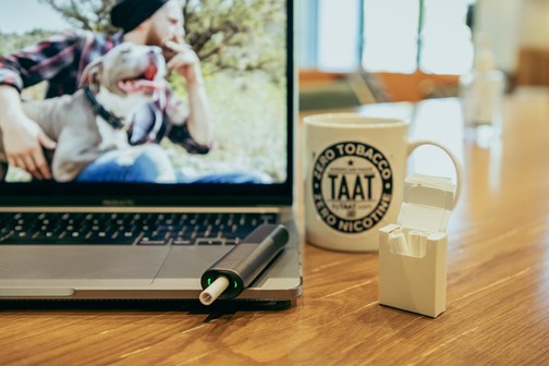The TAAT® heat-not-burn offering will consist of a reusable device (pictured below) that is reverse-compatible with heated tobacco sticks offered by the Company’s competitors, as well as TAAT® heatable sticks in Original and Menthol flavours. The hardware and heatable sticks will be marketed and sold under the TAAT® brand name in the United States starting in either Q3 or Q4 2022. By providing an additional nicotine-free and tobacco-free alternative to popular tobacco products, the Company believes it can further expand its existing market share in the global tobacco industry.