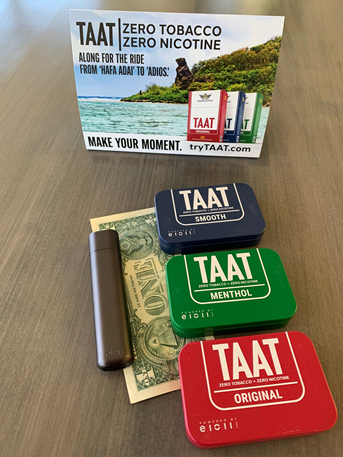 In its June 14, 2022 press release, E1011 Labs announced the second edition of its patented elon® combustion-free device using precision heating technology with unique features including a touchless “pause” function with which a user can suspend a session by blowing into a circular sensor. E1011 Labs stated the wide range of applications for heat-not-burn technology includes use cases in the pharmaceutical, cannabis, and tobacco categories. As the very first participant in E1011 Labs’ P3 ecosystem, TAAT® will work closely with E1011 Labs to commercialize a novel heat-not-burn option with no tobacco or nicotine.