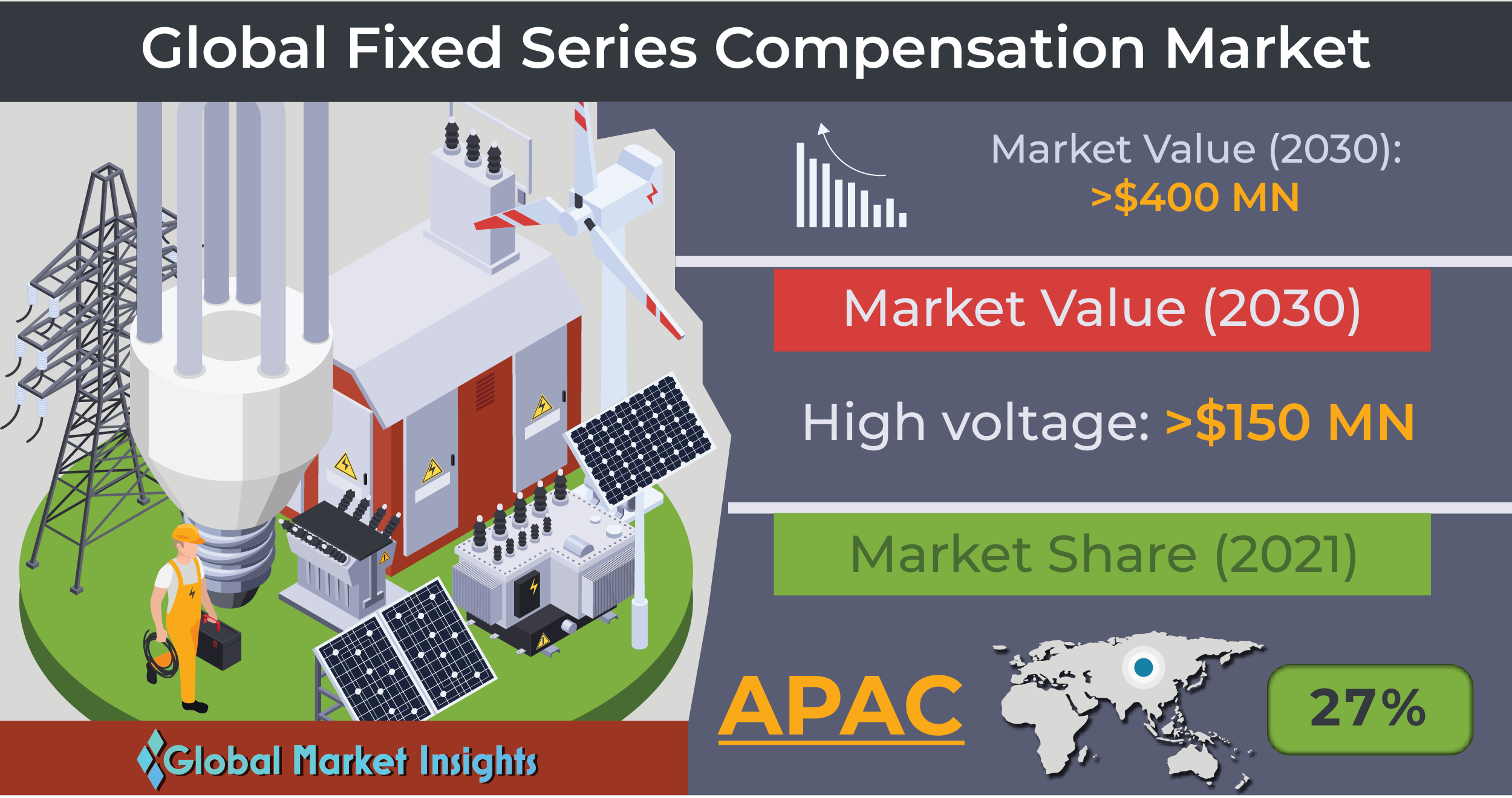 Fixed series compensation market size to surpass USD 400 million by 2030, according to the latest research study by Global Market Insights Inc. Minimizing power losses at the transmission line by maintaining high voltage stability will drive the fixed series compensation industry trends
