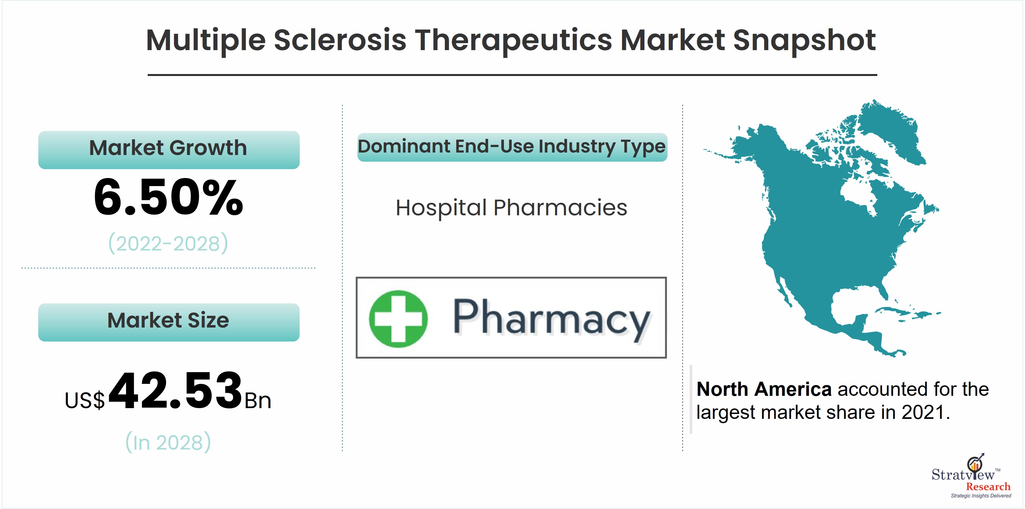 Multiple Sclerosis Therapeutics Market is expected to reach US$ 42.53 Billion in 2028, growing at a CAGR of 6.50% during 2022-2028, reports Stratview Research.