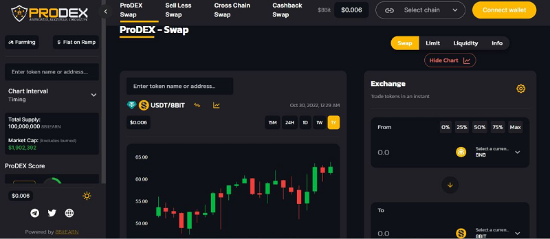 - ProDEX- A multi-chain user-friendly DeFi exchange with 4 Next Gen swaps that offers advanced dex features like limit orders, historical charts etc.