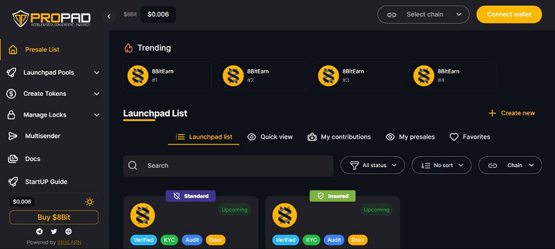 - ProPAD- A multi-chain launchpad that helps projects to launch and grow within the DeFi space.